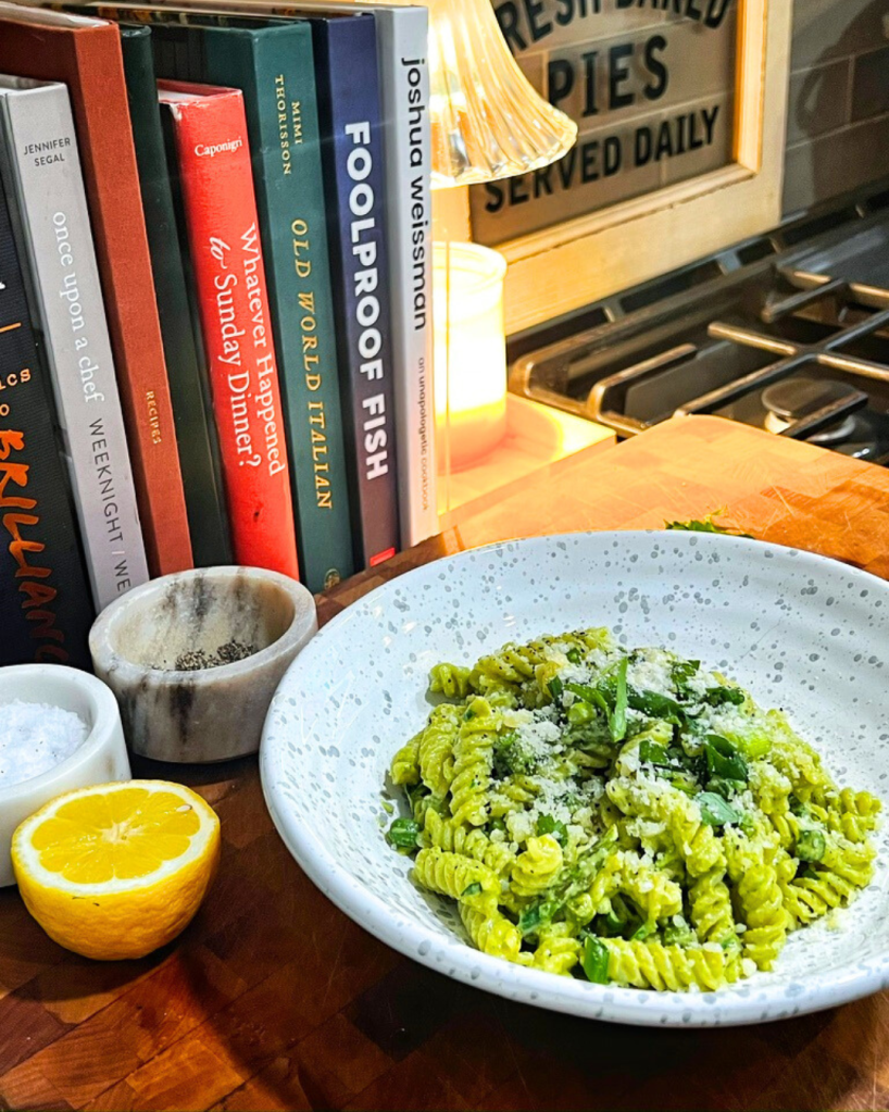 The wine wasn’t an overly thought out choice. A light wine like Avaline’s White Blend complements the pesto’s herbal and nutty flavors without overpowering them. It also seemed like something Bee Kèonigswasser would drink.