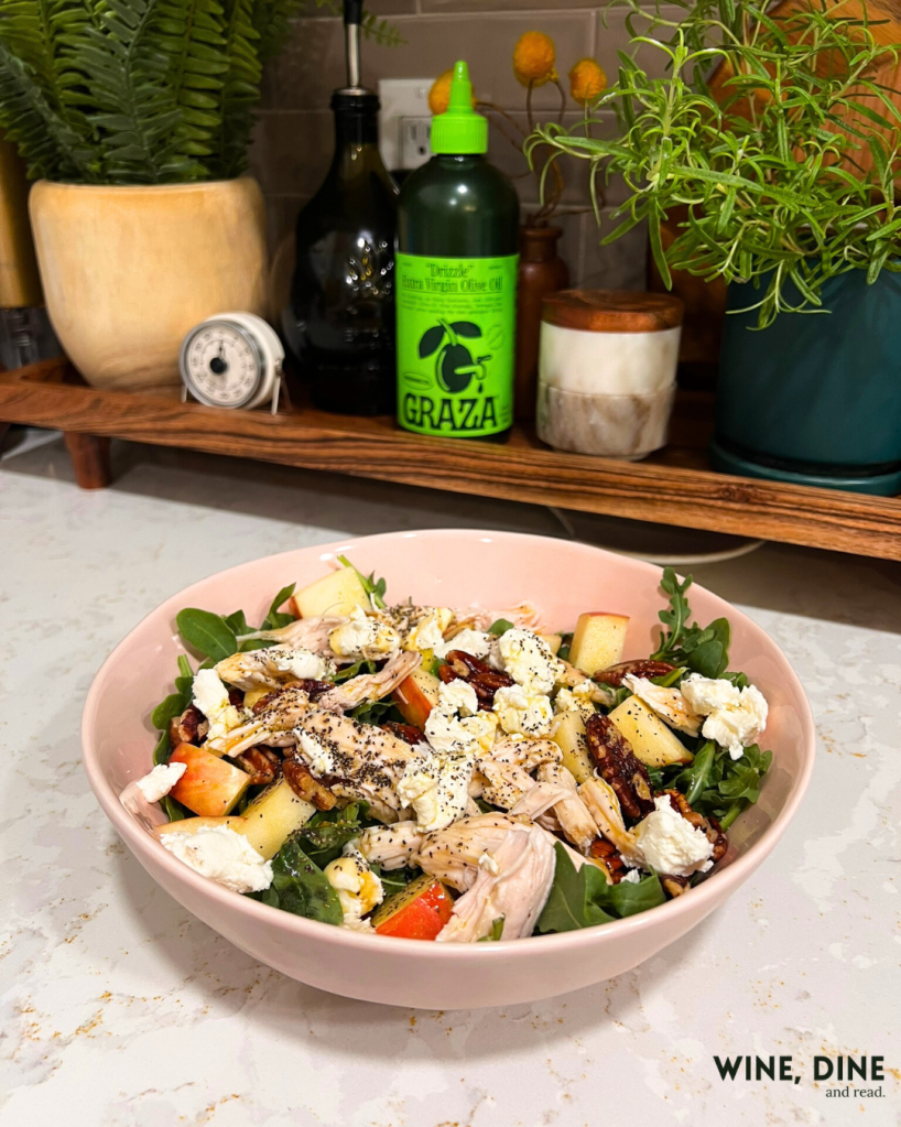 When we first meet Nora and Charlie in New York City, Nora’s at lunch, declaring, ‘the goat cheese salad is phenomenal.’ Considering her irritation with Charlie and that tense call with Grant earlier, she also goes for a dirty gin martini. So, why mess with a perfect scene? It just felt right to whip up both—the salad and the martini—even though a martini isn’t exactly wine. But hey, I do enjoy a good cocktail every now and then, so why not?